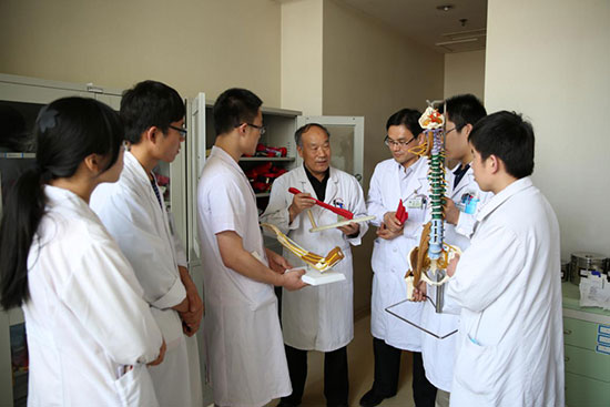 全國名老中醫藥傳承指導老師王景彥正在傳授中醫正骨技法