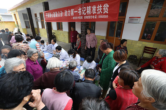 醫院義診專家隊登上海拔800米的大山頂上,為留守老人義診、查體