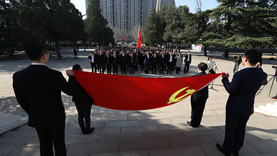 院黨委帶領全體黨員,在革命烈士紀念碑前,重溫入黨誓詞