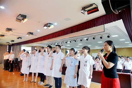 該院以黨的政治建設為統領,推動全面從嚴治黨向縱深發展,黨建工作在2018年度全省公立醫院黨的建設工作會議上作典型經驗交流,黨建案例“厚德尚醫,黨建領航促全面發展”榮獲全國衛生健康行業基層黨建“創新案例獎”。旗幟鮮明講政治。全院黨員干部牢固樹立“四個意識”,堅定“四個自信”,堅決做到“兩個維護”。強化思想理論武裝。建立黨員學習制度,每月以支部為單位組織黨員集中學習,并作為鐵的紀律貫徹執行,扎實推進“不忘初心、牢記使命”主題教育,引導全院黨員堅定理想信念,牢記初心使命,敢擔當有作為,爭當技術標兵、服務模范。加強支部自身建設。按照“將支部建在科室”的原則,對基層黨組織進行了重新調整,設立了9個黨總支和28個黨支部,充分發揮黨支部在科室的政治核心作用,從架構上打通黨建與業務融合的“梗阻”,推動黨業深度融合,選優配強各黨支部書記和支委委員,形成黨委、總支、支部三級書記抓黨建的工作格局。馳而不息抓好作風建設。深入開展“怕、慢、假、庸、散”作風整治行動,將“轉作風,優服務”的思想融入到醫療行為的每一個環節。細化服務標準,編印服務行為規范手冊,統一窗口人員著裝,對職工儀表儀態、語言交流進行規范要求。制定并嚴格執行勞動紀律管理規定,勞動紀律督查覆蓋至醫院各部門各科室、不留死角。2018年來,拒收紅包141人次,共計11.95萬元,收到感謝信40封、錦旗133面,全院醫德醫風、服務態度、工作作風明顯好轉。堅定不移推進黨風廉政建設。不折不扣落實“兩個責任”和“一崗雙責”,常態化開展黨風廉潔教育,使鐵的紀律轉化為全院黨員干部職工的日常習慣和自覺遵循,細化量化工作舉措和任務目標,層層壓實責任,步步緊逼責任落實,堅持懲前毖后、治病救人,運用監督執紀“四種形態”,持續釋放有責必擔、失責必問、問責必嚴的強烈信號,形成抓黨風廉政建設工作強大高壓態勢,推動醫院黨風政風醫德醫風持續好轉。