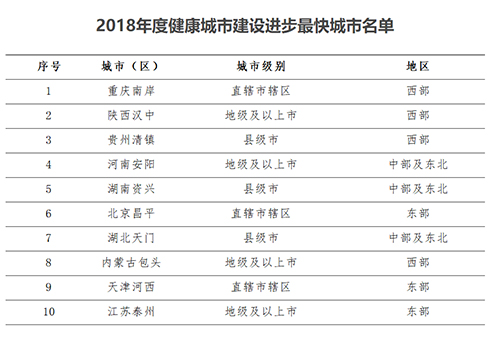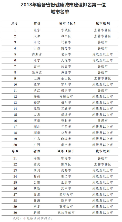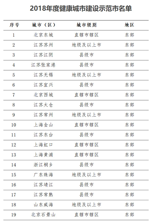 附:2018年度健康城市建設(shè)示范市名單、2018年度各省份健康城市建設(shè)排名第一位城市名單和2018年度健康城市建設(shè)進步最快城市名單