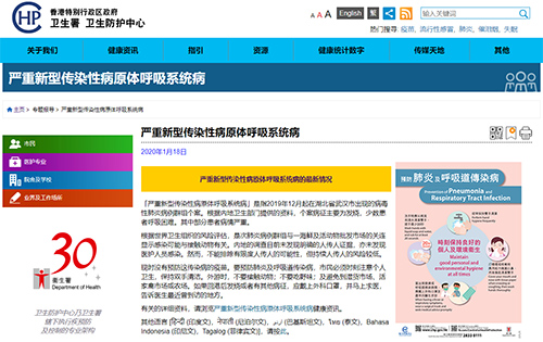 據香港特別行政區政府衛生署 衛生防護中心官網發布的《嚴重新型傳染性病原體呼吸系統病的最新情況》顯示,自2019年12月31日起,截至2020年1月19日中午12時,衛生署衛生防護中心共接獲99宗符合呈報準則的懷疑個案。