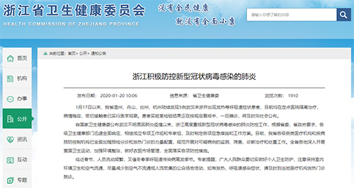 浙江省衛健委表示,自國家衛生健康委公布武漢不明原因肺炎疫情以來,浙江高度重視新型冠狀病毒感染的肺炎防控工作,根據省委、省政府要求,各級衛生健康部門迅速全面響應,相繼成立專項工作組和專家組,及時制定各項應急措施和工作方案。目前,我省各級各類醫療機構和疾病預防控制機構已全面加強預檢分診和發熱門診的力量配置,規范開展對可疑病例的監測、篩查、診斷治療和處置工作。全省各地深入開展愛國衛生運動,加強環境整治,做好農貿市場管理,全面落實各項防控措施。