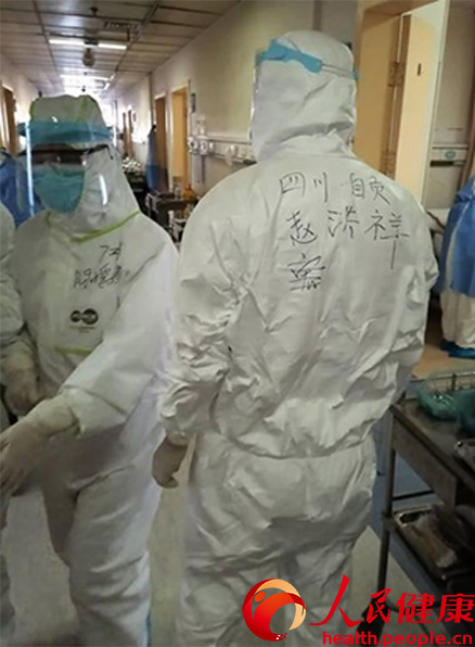 身穿防護服的趙洪祥。 自貢市第四人民醫院供圖