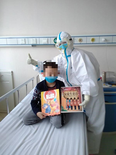 “我們群里上演了一場大討論。有人說網上有醫生幫忙輔導小病號學習的例子,可以給他帶二年級課本或習題集。也有人說,孩子生病夠可憐了,還要在病房“按頭學習”。后來謝華英護士提議,帶童話書來,學習娛樂兼顧。提議得到了大家的一致認可后,她便請自己12歲的女兒給這位沒見過面的“弟弟”挑選兩本書。第二天,童童便收到了謝華英帶來的《80個經典維尼故事》和《安徒生童話》。