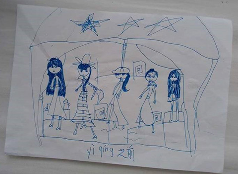 隨著童童和媽媽的狀況越來越好,閑暇之余,童童畫了兩幅畫“疫情之前”和“疫情期間”,送給護士阿姨們。
