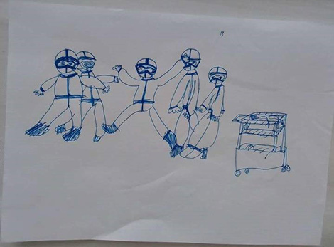 7歲患童畫筆下的護士們:從“時髦小姐姐”變身“大白超人”