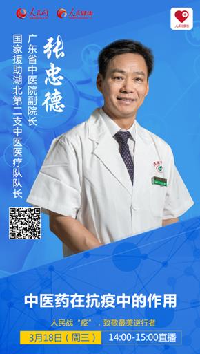 2020年3月18日14:00-15:00,“人民好醫生”客戶端將邀請國家援助湖北第二支中醫醫療隊隊長、廣東省中醫院副院長張忠德教授進行視頻直播,與您與您分享疫情中醫院管理者的思考。