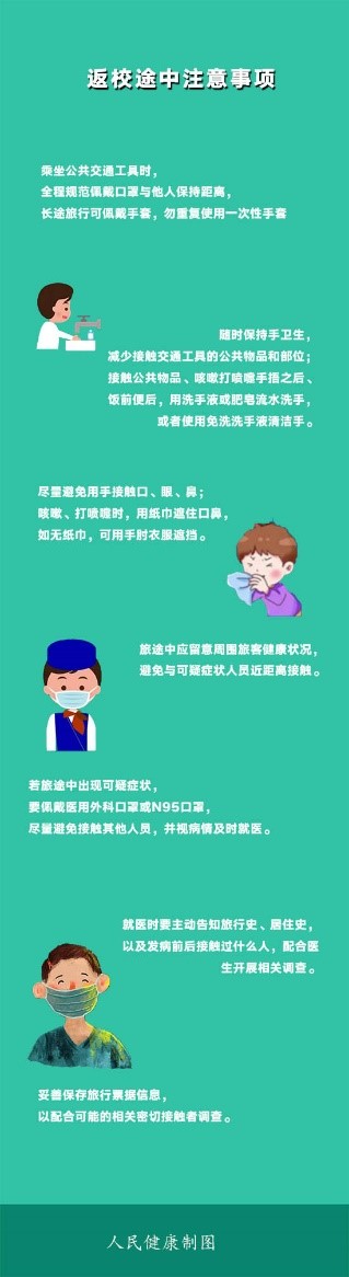 近日,多地明確開學(xué)日期。在即將返校的途中,學(xué)生如何做好自身防護(hù)、開學(xué)期間如何避免交叉感染,這些都是家庭、學(xué)校乃至全社會(huì)關(guān)注的重點(diǎn)。下面,健康小編就向大家介紹一下返校途中以及學(xué)生上課后應(yīng)該注意的事項(xiàng)。