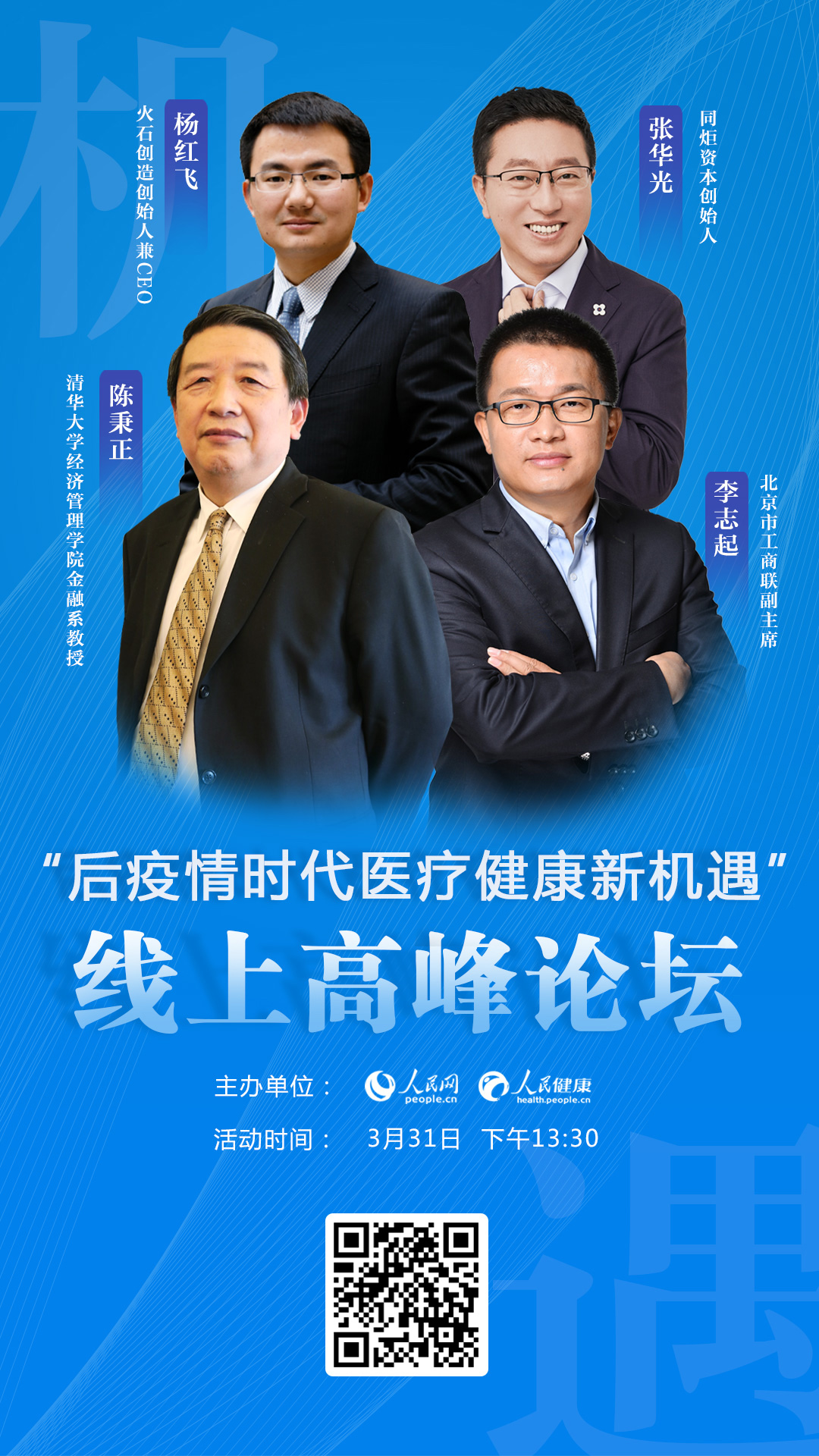 人民網(wǎng)北京4月1日電 新冠肺炎疫情的暴發(fā),讓全球正在經(jīng)歷一場(chǎng)公共衛(wèi)生防御體系與健康治理的嚴(yán)峻考驗(yàn)。在國(guó)內(nèi)疫情防控形勢(shì)穩(wěn)定持續(xù)向好,取得階段性成效的背景之下,為深入貫徹落實(shí)健康中國(guó)戰(zhàn)略,探討大健康產(chǎn)業(yè)的發(fā)展與未來(lái),3月31日,人民網(wǎng)·人民健康召開(kāi)“2020健康中國(guó)人系列活動(dòng)”之“后疫情時(shí)代醫(yī)療健康新機(jī)遇”線上高峰論壇,邀請(qǐng)業(yè)內(nèi)專(zhuān)家學(xué)者、企業(yè)代表聚焦后疫情時(shí)代醫(yī)療健康的未來(lái),分享醫(yī)療健康行業(yè)的最新成果、發(fā)展趨勢(shì)及投資機(jī)遇,交流觀點(diǎn)與思考,為我國(guó)大健康產(chǎn)業(yè)下一步發(fā)展建言獻(xiàn)策。