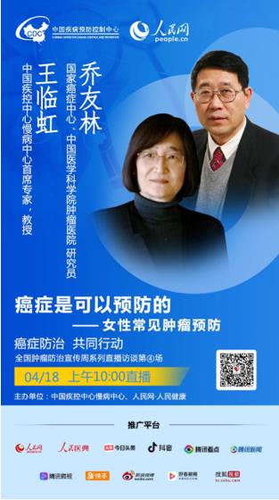 2020年4月18號(周六)上午10:00-11:00,人民日報社旗下新媒體“人民好醫(yī)生”客戶端將邀請國家癌癥中心、中國醫(yī)學(xué)科學(xué)院腫瘤醫(yī)院研究員喬友林;中國疾控中心慢病中心首席專家王臨虹教授進(jìn)行視頻訪談,與大家在線分享。