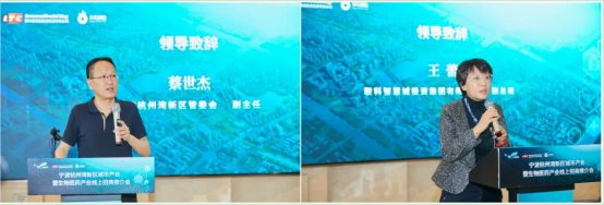 寧波杭州灣新區管委會副主任蔡世杰、聯科智慧城投資集團有限公司副總裁王蕾分別致辭