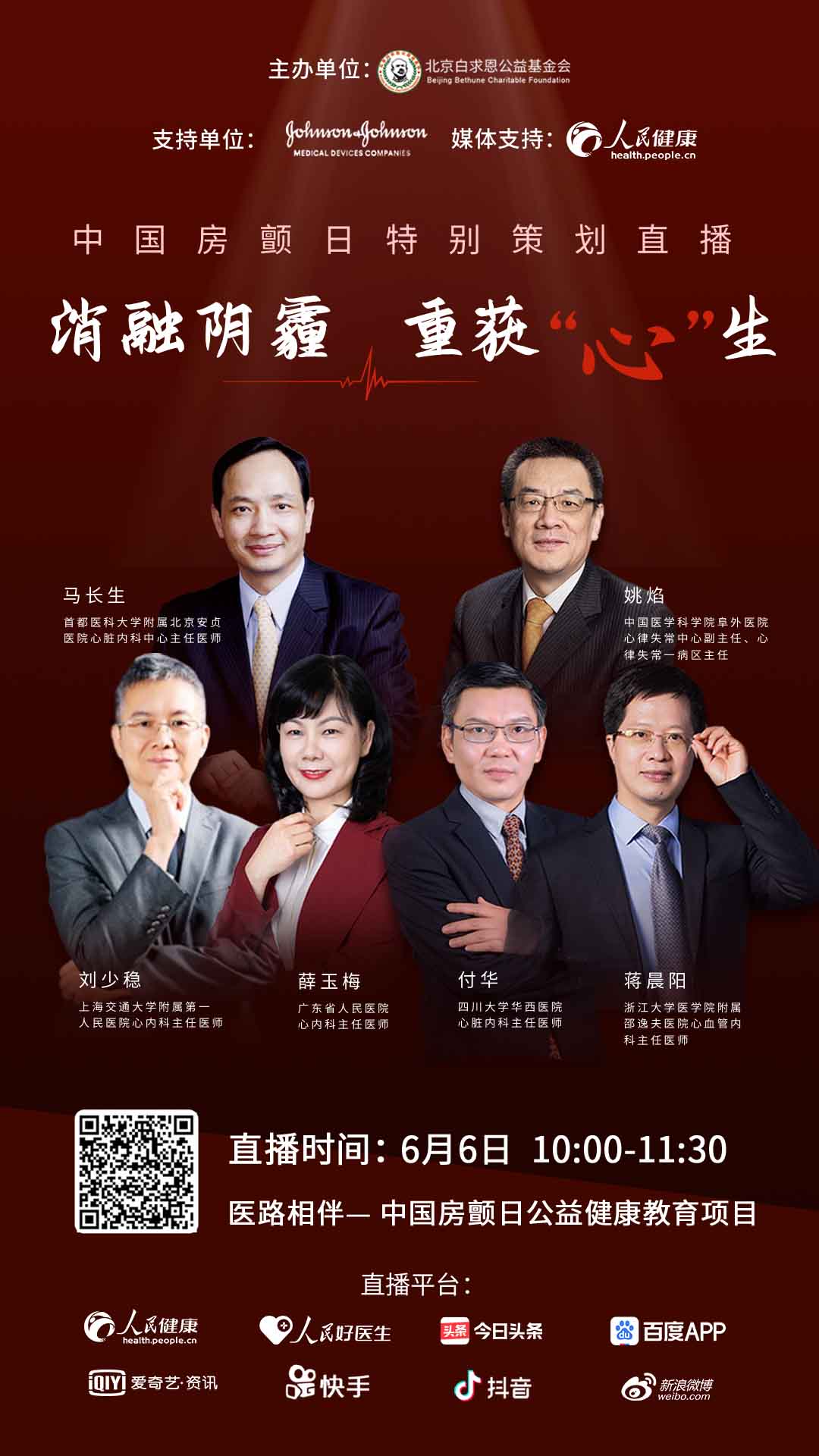 6月6日,由北京白求恩公益基金會、強生醫療主辦,以“消融陰霾,重獲‘心’生”為主題的“醫路相伴—中國房顫日公益健康教育項目”活動將在當天啟動。人民網·人民健康提供全媒體支持。