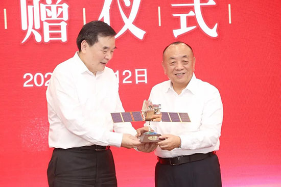 隨后,舒歌群與李西廷簽署捐贈協議,并向李西廷授予捐贈牌和捐贈證書。包信和代表母校向李西廷贈予了一樣特別的禮物,是令中科大引以為傲的量子通信“墨子號”衛星模型。