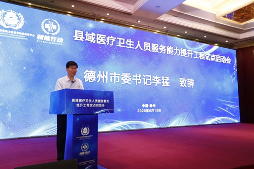 德州市市委書記李猛在致辭中表示,這次縣域醫療衛生人員服務能力提升工程在德州開展試點,將有力推進德州市全面落實分級診療制度,切實解決優質醫療衛生資源不足、結構布局不夠合理、群眾就醫不夠便捷等問題,盡快實現縣域就診率90%、縣域內基層就診率65%的目標,為全市人民群眾提供更高質量、更加便捷、更為經濟的醫療衛生服務。