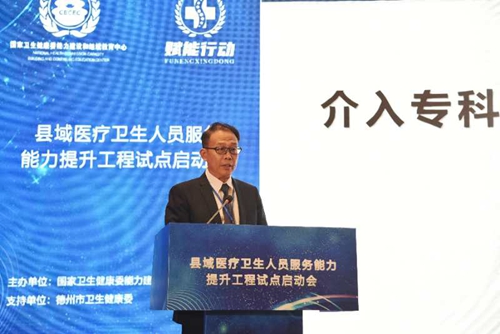 此外,德州市人民政府副市長范宇新還在會上介紹了德州市醫療衛生工作總體情況,陵城區人民政府區長李希巖與大家分享了緊密型縣域醫共體的建設經驗,國家衛生健康委能力建設和繼續教育中心繼續教育處處長宋仙保對縣域醫療衛生人員服務能力提升工程進行了詳細介紹,北京大學第一醫院介入血管外科主任鄒英華介紹了介入專科培訓體系及共建標準,德州市人民醫院書記程吉東對本次工程試點介入專科培訓基地進行了介紹。