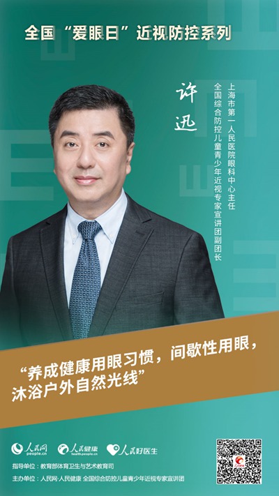 上海市第一人民醫院眼科中心主任、全國綜合防控兒童青少年近視專家宣講團副團長許迅在“防‘近’于未然 如何給孩子建立視力檔案”節目中,對近視能不能治愈、孩子需要哪些視力檢查、日常生活中如何進行近視防控等問題詳細講解。