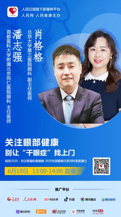2020年6月19日(周五)13:00-14:00,“人民好醫(yī)生”客戶端將邀請首都醫(yī)科大學(xué)附屬北京同仁醫(yī)院眼科主任醫(yī)師潘志強(qiáng),北京大學(xué)第三醫(yī)院眼科副主任醫(yī)師肖格格一起和大家分享干眼癥的相關(guān)話題。