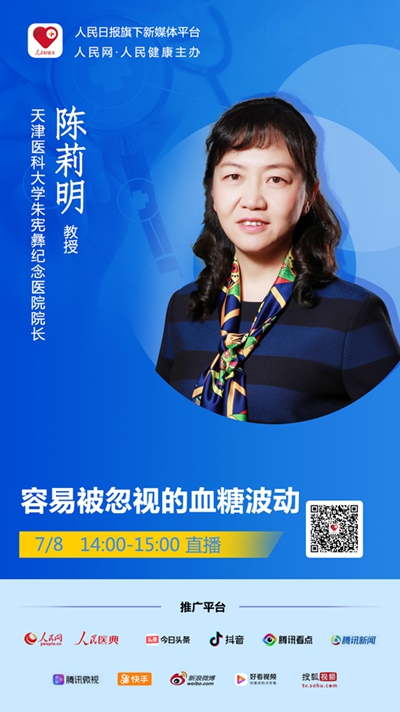 2020年7月8日 周三 14:00-15:00,值“餐后血糖7.8”健康宣傳日之際,人民日報社旗下新媒體“人民好醫生”客戶端將邀請天津醫科大學朱憲彝紀念醫院院長陳莉明教授進行視頻直播,為廣大糖尿病患者解答餐后血糖與血糖波動相關問題,千萬不要錯過。