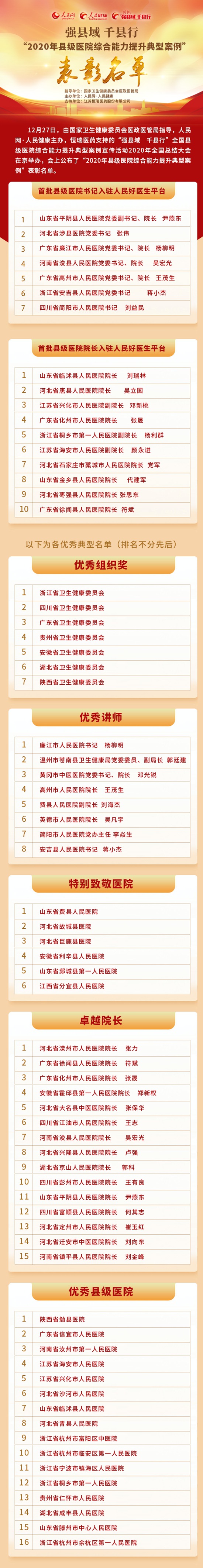 “2020年縣級醫院綜合能力提升典型案例”表彰名單公布