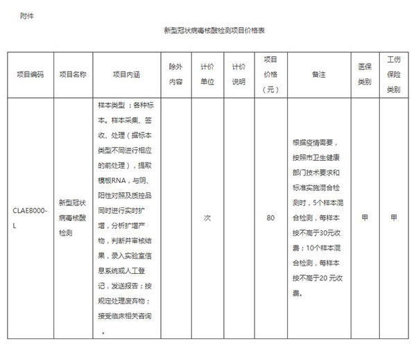 各有關(guān)醫(yī)療機(jī)構(gòu)應(yīng)當(dāng)主動(dòng)在顯著位置公示新型冠狀病毒核酸檢測及混合檢測價(jià)格,嚴(yán)格按照規(guī)定向患者提供服務(wù)并收取費(fèi)用,規(guī)范自身價(jià)格行為。各檢測機(jī)構(gòu)應(yīng)同時(shí)提供不同服務(wù),供群眾選擇。