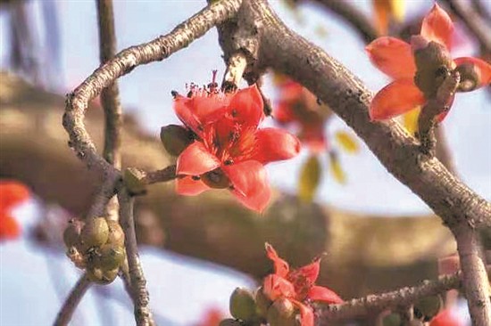每年木棉花開時,不少市民會在木棉樹下、花叢里撿一些落下來的木棉花,拿回去曬干煲湯喝。老廣們熟知的“五花茶”,其中的一種花就是木棉花。