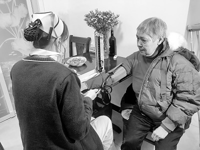 專業醫護人員上門為簽約家庭養老床位老人量血壓。南京市民政局供圖