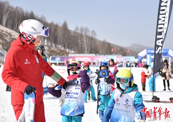 3月27日在崇禮舉行的超級定點滑雪公開賽總決賽上,記者看到了一支來自甘肅的小學生隊,他們都是甘肅省蘭州市城關區清華小學的學生,蘭州市城關區清華小學校長張小瑞向中青報·中青網記者介紹,“北京冬奧會即將舉行,我們學校是冬奧特色學校,我們的學生應該以怎樣的方式參與北京冬奧呢?讓孩子們體驗、學會一項冰雪運動技能就是最好的參與方式。”張小瑞說,蘭州周邊有幾家雪場,我們組織孩子們學習滑雪之后,孩子們都特別喜歡。張小瑞表示,唯一讓更多孩子參與滑雪運動的阻礙就是費用,“如果滑雪的費用能夠再低一些,或者國家有政策可以讓孩子們免費學滑雪的話,我相信,所有的孩子都會喜歡這項運動。”