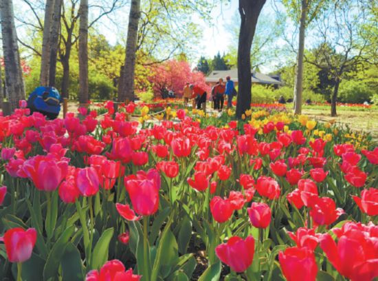 目前正值北京植物園第33屆桃花觀賞季舉辦期間,除郁金香外,園區內的桃花、海棠、丁香等近百種(含品種)春花目前都已進入觀賞期,可謂群芳薈萃、百花爭艷,共同展現最美麗的春天,是市民游客踏青賞春的理想去處。 本報記者 吳鏑攝
