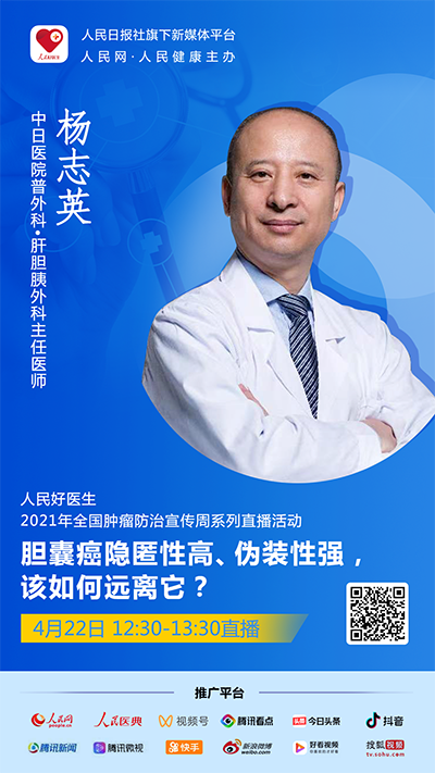 膽囊癌“隱匿性”那么高,“偽裝技術”那么強,我們應該如何預防它?2021年4月22日(周四)12:30-13:30,中日醫院肝膽外科主任醫師楊志英將做客人民日報社旗下新媒體“人民好醫生”客戶端,就膽囊癌的預防問題為大眾答疑解惑。