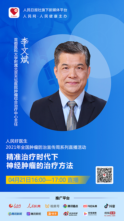 2020年4月21日(周三)16:00—17:00,“人民好醫(yī)生”客戶端將邀請首都醫(yī)科大學(xué)附屬北京天壇醫(yī)院腫瘤綜合治療中心主任李文斌,聊一聊精準(zhǔn)治療時(shí)代下神經(jīng)腫瘤治療的相關(guān)內(nèi)容。