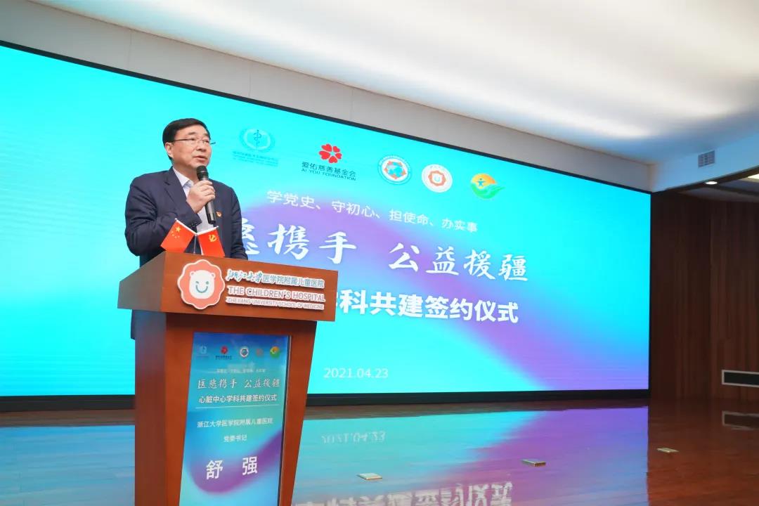 浙大兒院黨委書記舒強表示,浙大兒院將黨史學習教育與醫院醫教研各項工作深度融合,此次與烏魯木齊兒童醫院合作開展“心臟中心學科共建”項目,正是浙大兒院立足黨的百年發展歷史新起點,在新時代踐行“為了兒童健康”辦院宗旨的生動詮釋,是浙大兒院作為兩個國家中心履行“傳、幫、帶”使命擔當的具體實踐。浙大兒院與愛佑慈善基金會開展醫療救助慈善公益合作十余年,雙方在多領域不斷探索“醫慈協同”的公益模式。同時,浙大兒院作為福棠兒童醫學發展研究中心的副理事長單位,積極參與學科發展、基層兒科醫生培訓等工作,此次與烏木魯齊兒童醫院的學科共建,是我們多方努力共同為兒科醫學事業發展貢獻力量。