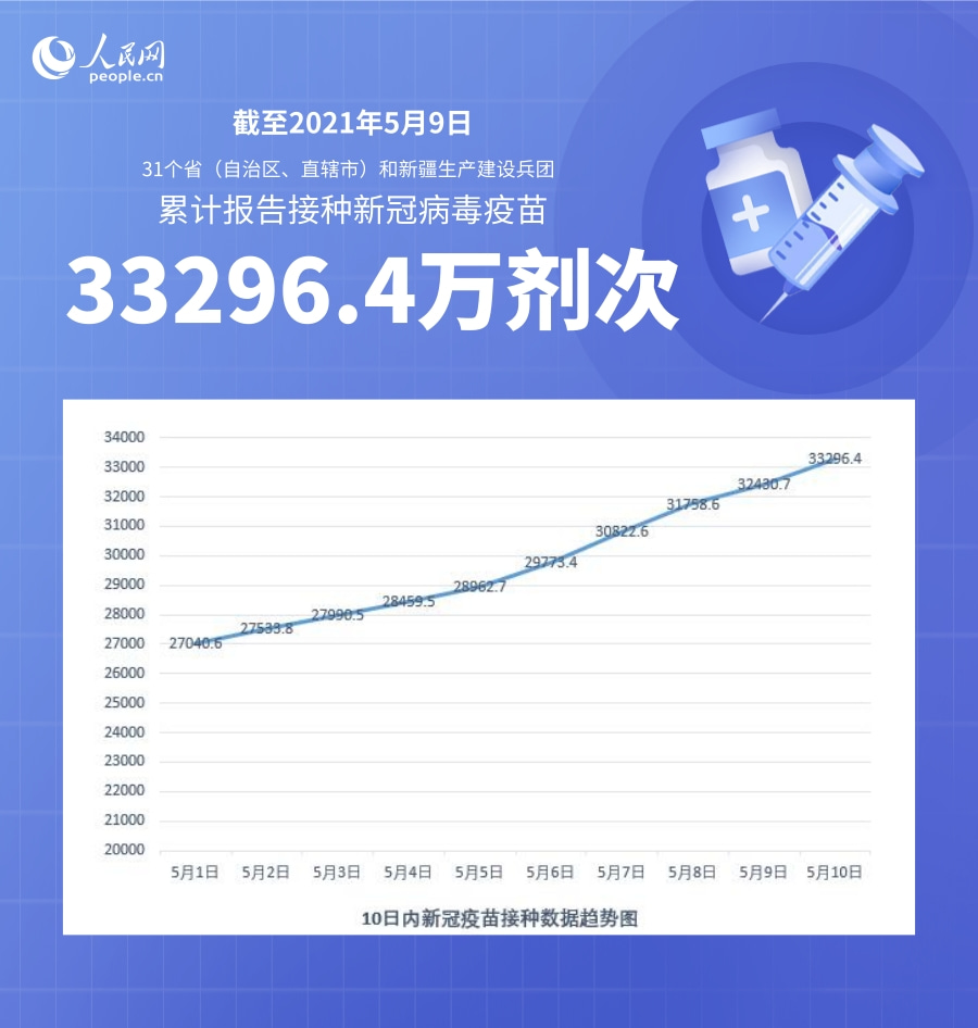 國(guó)家衛(wèi)健委:截至5月10日全國(guó)累計(jì)接種新冠病毒疫苗33296.4萬(wàn)劑次
