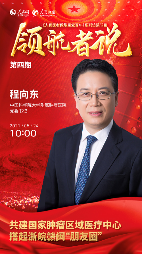 5月24日10:00,中國科學院大學附屬腫瘤醫院黨委書記程向東做客演播室,以共建國家腫瘤區域醫療中心,搭起浙皖贛閩“朋友圈”為主題進行訪談。