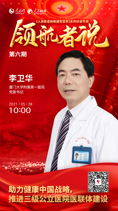 5月28日 10:00,廈門大學附屬第一醫院黨委書記李衛華做客演播室,以“助力健康中國戰略,推進三級公立醫院醫聯體建設”為主題進行訪談。