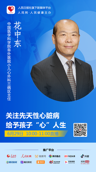 6月29日10:00至11:00,中國醫學科學院阜外醫院小兒心外科三病區主任花中東做客人民好醫生名醫直播欄目,給公眾科普兒童先天性心臟病治療的相關知識。