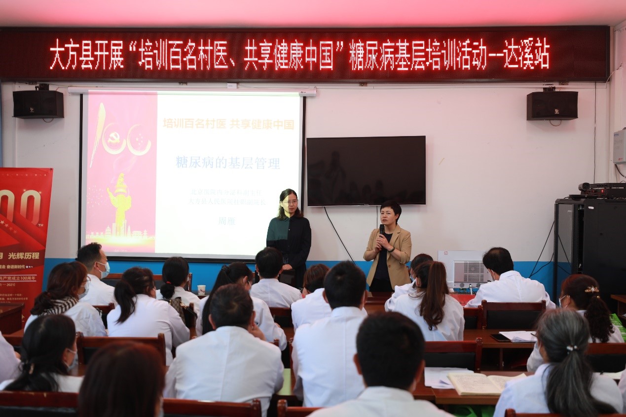 此次“培訓百名村醫(yī),共享健康中國”糖尿病管理基層培訓活動,由幫扶專家、北京醫(yī)院內(nèi)分泌科副主任、貴州省大方縣人民醫(yī)院掛職副院長周雁倡議策劃,在貴州省醫(yī)學會內(nèi)分泌暨糖尿病分會、大方縣衛(wèi)健局、大方縣人民醫(yī)院的支持與指導下,與該院腎內(nèi)內(nèi)分泌科醫(yī)護工作人員協(xié)力展開,旨在加強對糖尿病的基層管理,強化縣級人民醫(yī)院與基層鄉(xiāng)鎮(zhèn)衛(wèi)生院、村衛(wèi)生所的上下聯(lián)動與分級診療。同時,該培訓也是北京醫(yī)院幫扶專家與大方縣衛(wèi)健局、大方縣人民醫(yī)院落實黨史學習教育“我為群眾辦實事”實踐要求,為大方縣群眾辦實事的舉措之一。