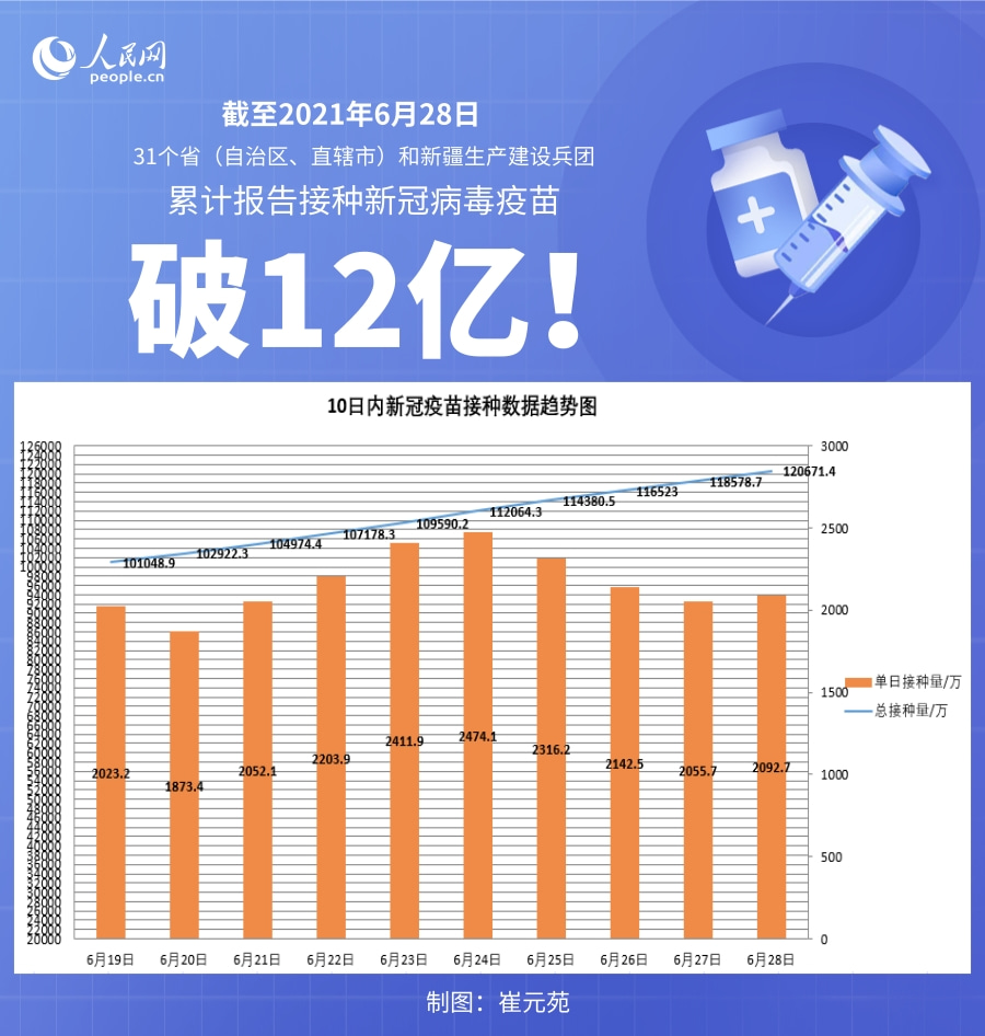 國(guó)家衛(wèi)健委:截至6月28日全國(guó)累計(jì)接種新冠病毒疫苗120671.4萬(wàn)劑次