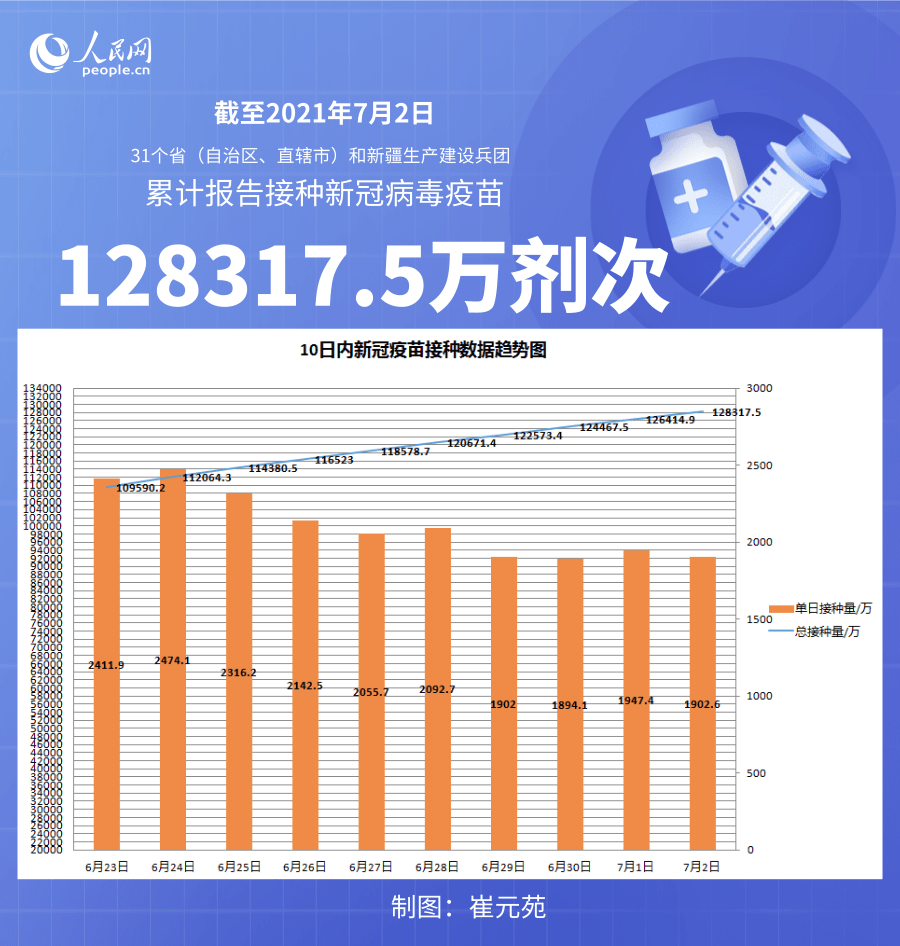 國家衛(wèi)健委:截至7月2日全國累計接種新冠病毒疫苗128317.5萬劑次