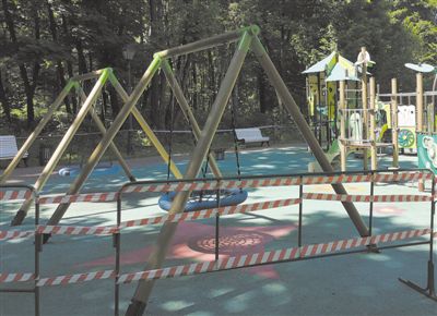 圖為莫斯科一兒童游樂場(chǎng)因疫情暫停開放。本報(bào)記者 董映璧攝