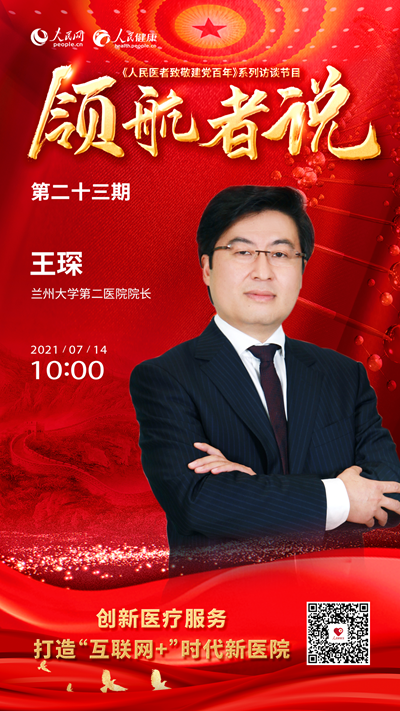 7月14日10:00,蘭州大學第二醫院院長王琛將做客演播室,以“創新醫療服務 打造‘互聯網+’時代新醫院”為題進行訪談。
