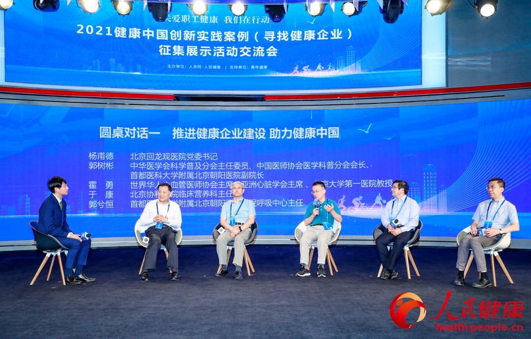 7月6日,由人民網(wǎng)·人民健康主辦、美年健康集團(tuán)支持的以“關(guān)愛職工健康 我們在行動”為主題的2021健康中國創(chuàng)新實踐案例(尋找健康企業(yè))征集展示活動交流會在京舉行。在圓桌論壇環(huán)節(jié),多位嘉賓圍繞“推進(jìn)健康企業(yè)建設(shè) 助力健康中國”展開探討。