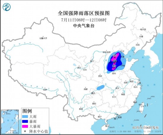 據中央氣象臺網站消息,中央氣象臺7月11日06時繼續發布暴雨黃色預警:預計,7月11日08時至12日08時,華北中南部、黃淮北部等地有大到暴雨,其中,山西東部、河北中南部沿山一帶、河南北部等地部分地區有大暴雨(100~200毫米)。上述部分地區伴有短時強降水(最大小時降雨量30~60毫米,局地可超過100毫米),局地有雷暴大風等強對流天氣。