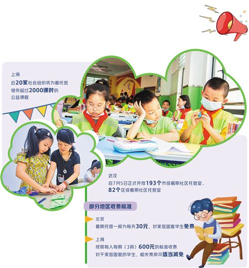 為此,多地政府推出了“暑托班”服務。7月2日,北京市教委發(fā)布公告,將在暑期推出面向小學一年級至五年級學生的托管服務,由各區(qū)教委組織,學校承辦。此前,上海、武漢等多地已推出暑假托管服務。