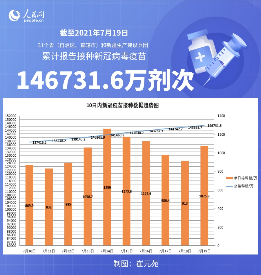 國家衛(wèi)健委:截至7月19日全國累計接種新冠病毒疫苗146731.6萬劑次