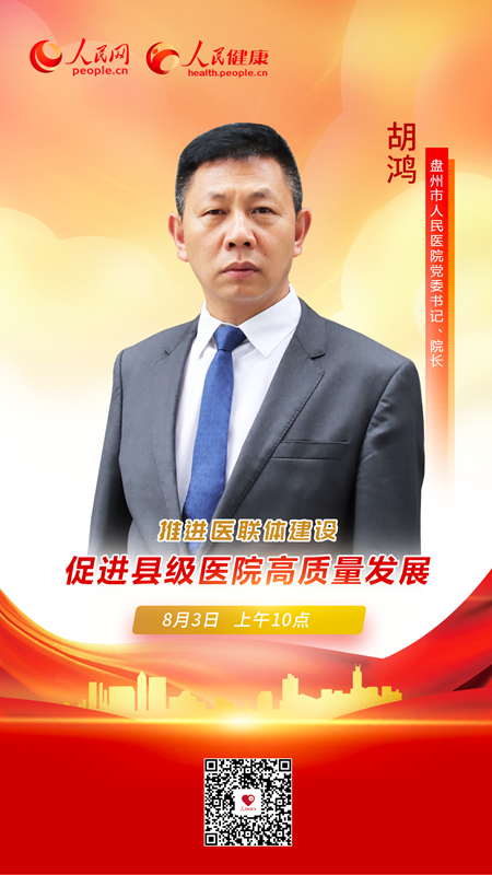 8月3日上午10:00,盤州市人民醫(yī)院黨委書記、院長(zhǎng)胡鴻將做客直播間,以《推進(jìn)醫(yī)聯(lián)體建設(shè) 促進(jìn)縣級(jí)醫(yī)院高質(zhì)量發(fā)展》為主題,談縣級(jí)醫(yī)院的發(fā)展與未來。