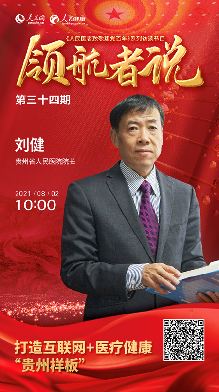 8月2日10:00,貴州省人民醫院院長劉健做客演播室,以打造互聯網+醫療健康“貴州樣板”為主題進行訪談。歡迎收看。