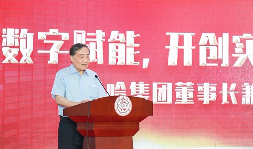 宗慶后在娃哈哈快銷網開業新聞發布會上講話。受訪者供圖