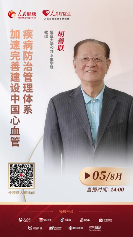 8月5日14:00,復旦大學公共衛生學院教授胡善聯將做客人民日報社旗下新媒體“人民好醫生”客戶端直播間,為大家帶來“加速完善建設中國心血管疾病防治管理體系”系列訪談對話第二場,為您解答上述問題,歡迎屆時收看。