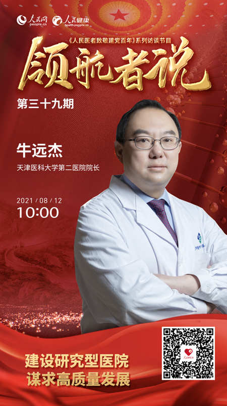 8月12日10:00,天津醫(yī)科大學第二醫(yī)院院長牛遠杰做客演播室,以“建設研究型醫(yī)院 謀求高質量發(fā)展”為主題進行訪談。